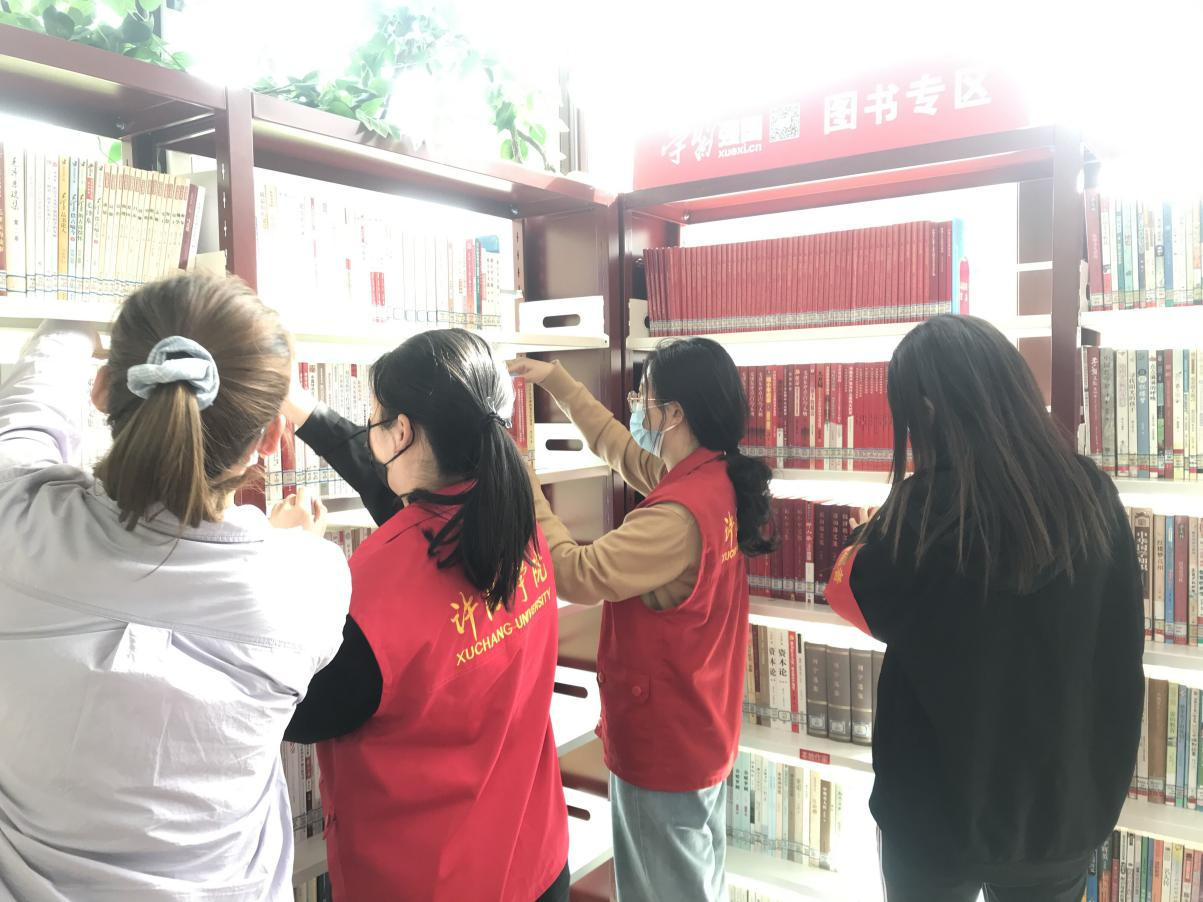 4月21日,发展对象在许都广场书屋展开“书屋志愿者”社会实践活动。同学们们在书屋打扫卫生,手拿抹布、扫把等清理工具,将书屋的桌椅板凳、门窗地面、角角落落打扫干净;整理图书、运送书籍,一起整理书架上的图书,把散落在书架上和书桌上的书分别放回书架里,并将书籍按照门类做好标签、登记归档电脑、有序摆满书架。并且帮助工作人员把归还回来的图书重新整理摆放,协助工作人员对前来阅读的市民进行指导帮助,让进入书屋阅读的读者倍感舒适,阅读氛围也更加浓厚。