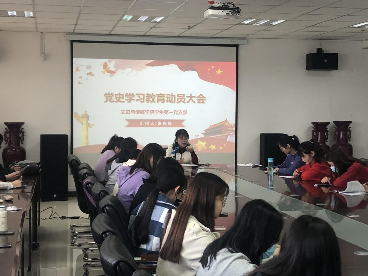 为了深入学习贯彻习近平总书记在党史学习教育动员大会上的重要讲话精神,以院党委统一部署的要求,4月15日,我院学生第一党支部在文综楼1723召开“党史学习教育动员大会”。本次大会由学生第一党支部书记张姗姗主持,全体学生党员参加。