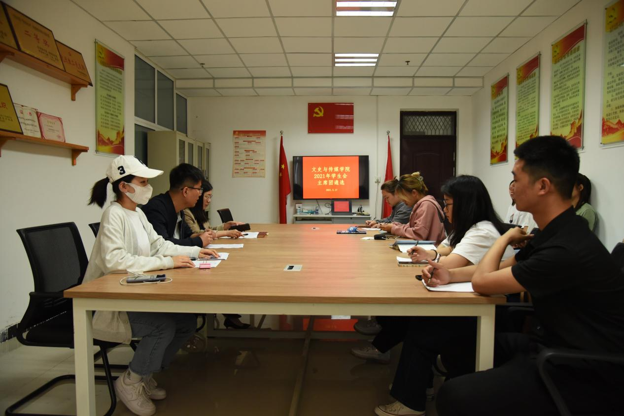 5月17日晚上六点,我院在文综楼1509会议室举行新一届学生会主席团遴选答辩会,文史与传媒学院党委副书记马丽娜、院团委书记訾冉、我院上届学生会主席团成员,以及新一届学生会主席团竞选学生参加了本次答辩。