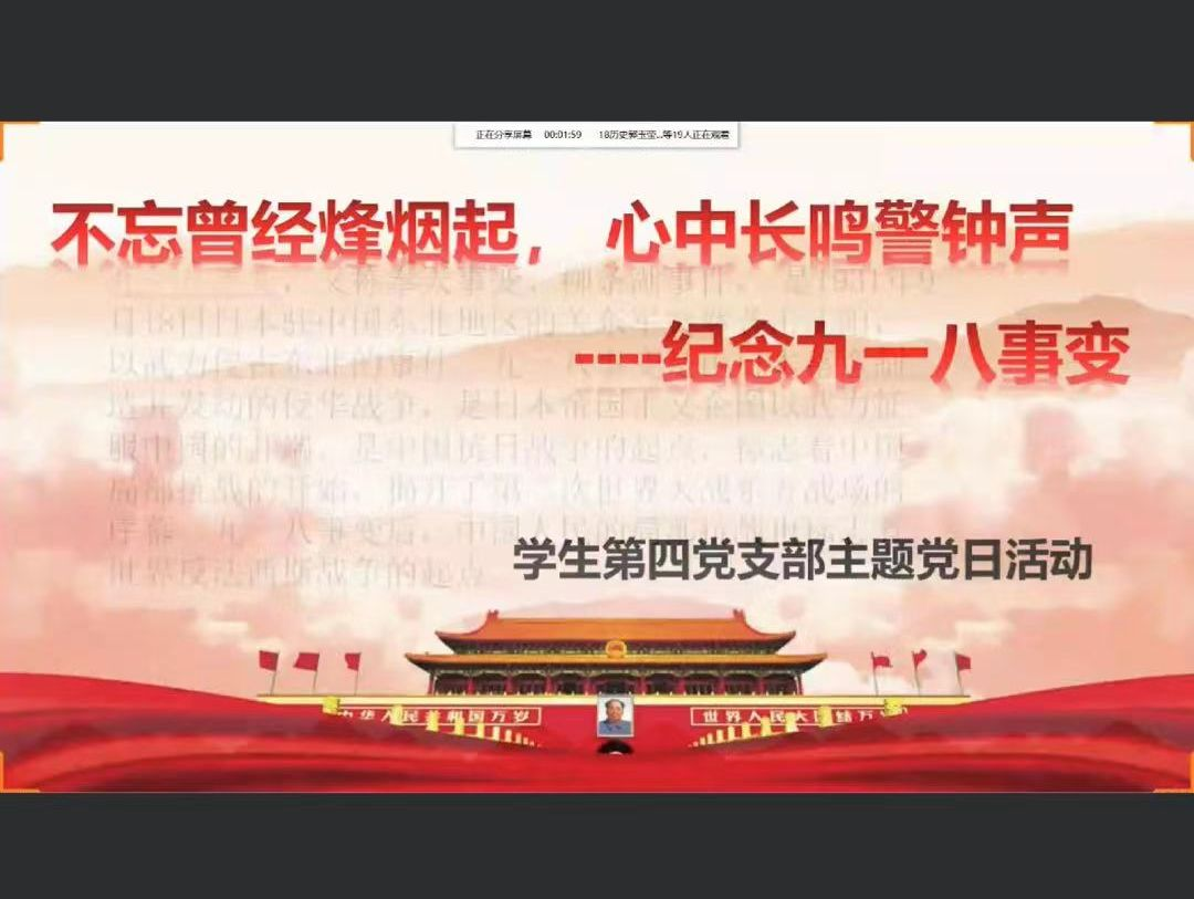 9月22日下午,我院学生第四党支部召开“不忘曾经烽烟起,心中长鸣警钟声”纪念九一八事变90周年的线上主题党日活动。