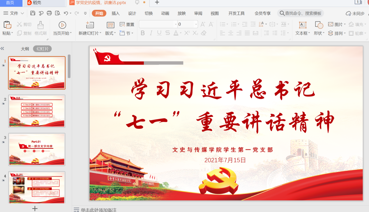 为进一步学习好、宣传好、贯彻好习近平总书记“七一”重要讲话精神,提高政治站位,深刻、准确把握“七一”重要讲话的精神实质和丰富内涵,我院学生第一党支部于7月15日开展学习习近平总书记“七一”重要讲话精神线上主题党日活动。本次会议由张姗姗老师主持,全体党员参加学习。