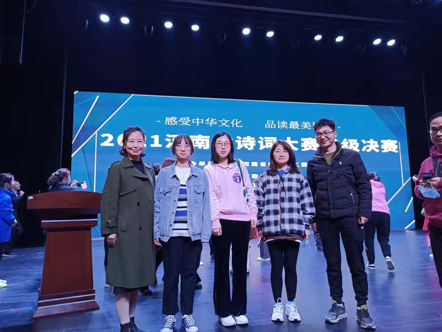 感受中华文化,品读精美诗词。10月20日下午,“2021年河南省诗词大赛”大学组和社会组的决赛在南阳大剧院举行,我院张嘉欣同学成功入围河南省首届诗词大赛决赛,最终获得大学组三等奖。
