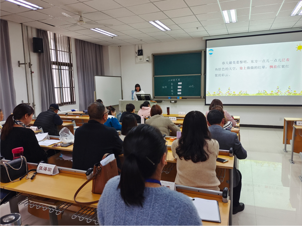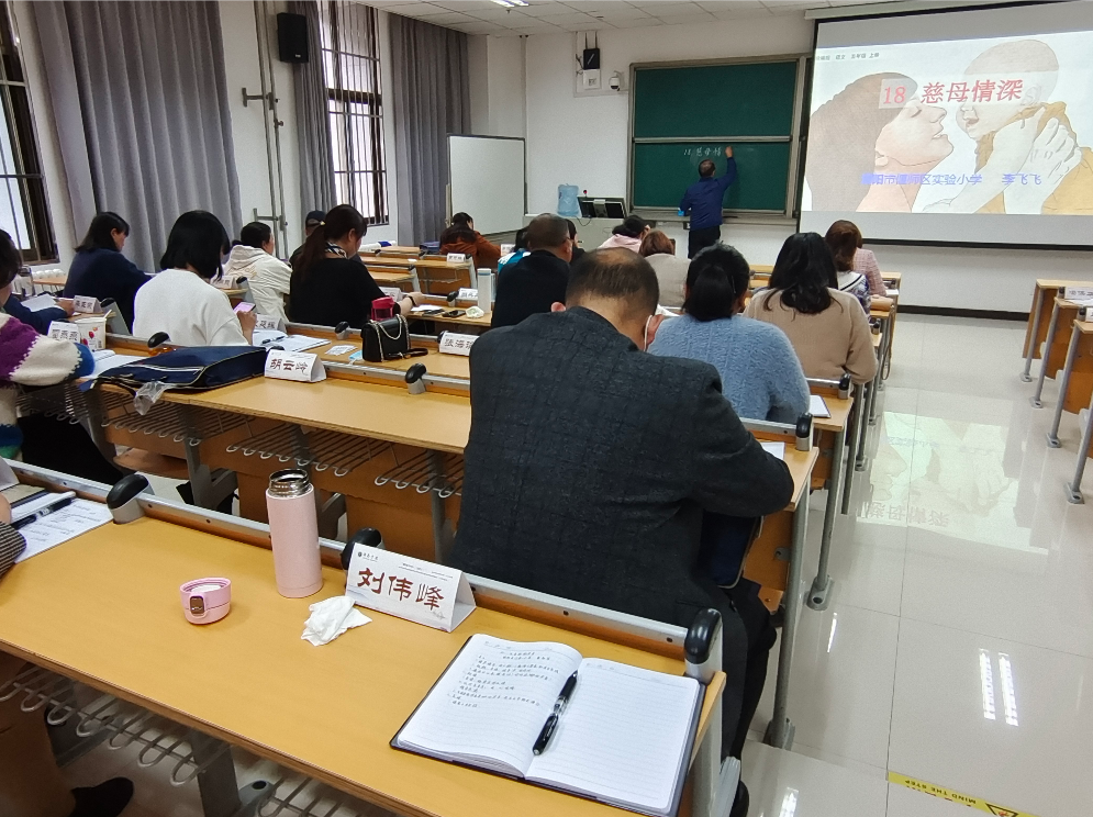 2021年10月31日下午2时30分,“国培计划(2021)”农村骨干教师能力提升项目——市级骨干教师培训小学语文班的全体学员,在许昌学院文科综合楼E106教室,展开了一场高手间的研课较量。