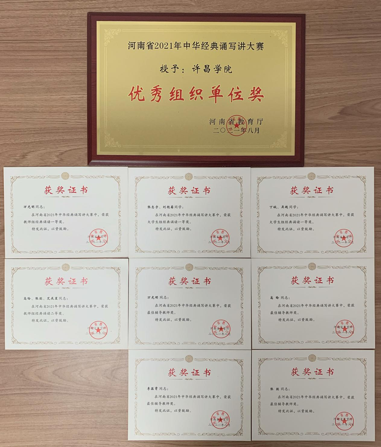 近日,河南省教育厅公布了河南省第三届中华经典诵写讲大赛“诵读中国”经典诵读大赛获奖名单,我院诵读作品获得三项一等奖、一项二等奖,四名教师被评为“最佳辅导教师”,许昌学院荣获“优秀组织单位”奖,获奖层次与数量均居全省同类院校前列。