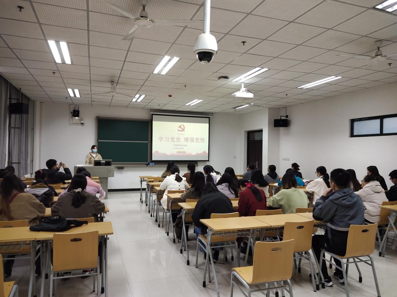 11月19日下午,我院学生第四党支部书记鲍利涵以“学习党史增强党性”为主题给支部全体党员上了一堂生动、深刻的党课。