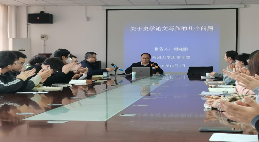 2021年12月5日,郑州大学历史学院副院长、教授、近现代河南与中国研究中心副主任谢晓鹏应邀在文综楼1723会议室为我院师生作了一场题为《关于史学论文写作的几个问题》的讲座。我院部分教师、2019级和2020级历史专业学生参加讲座,讲座由我院院长尤建设主持。