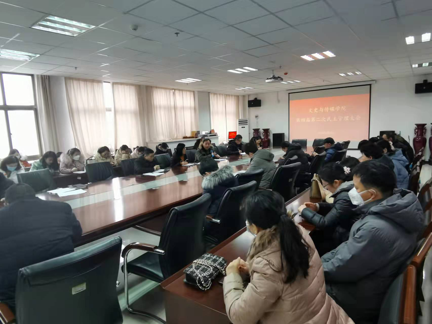 2022年2月17日,我院在文科综合楼1723会议室召开文史与传媒学院第四届第二次民主管理大会。大会由我院党委书记、分工会主席许涛主持,我院全体教职工参加会议。
