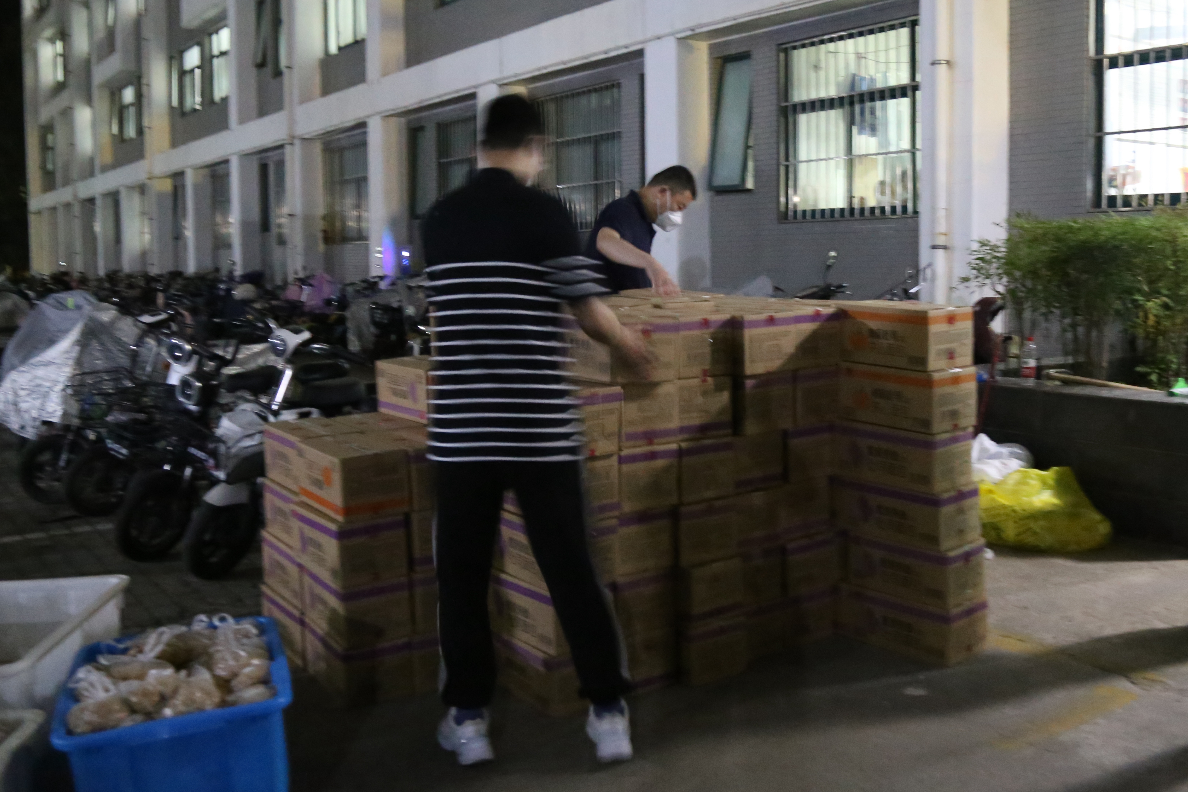 志愿者每天负责对静庐7号宿舍261间宿舍1300余名学生进行两次核酸检测和三餐配送,穿防护服、戴面罩、扫码、消毒、采样、装管、封管,每次两个多小时的检测下来,志愿者早已大汗淋漓;卸货、搬运、统计、分发,志愿者不分日夜,及时把三餐和水果发放到学生手中,全力保障学生的日常生活。