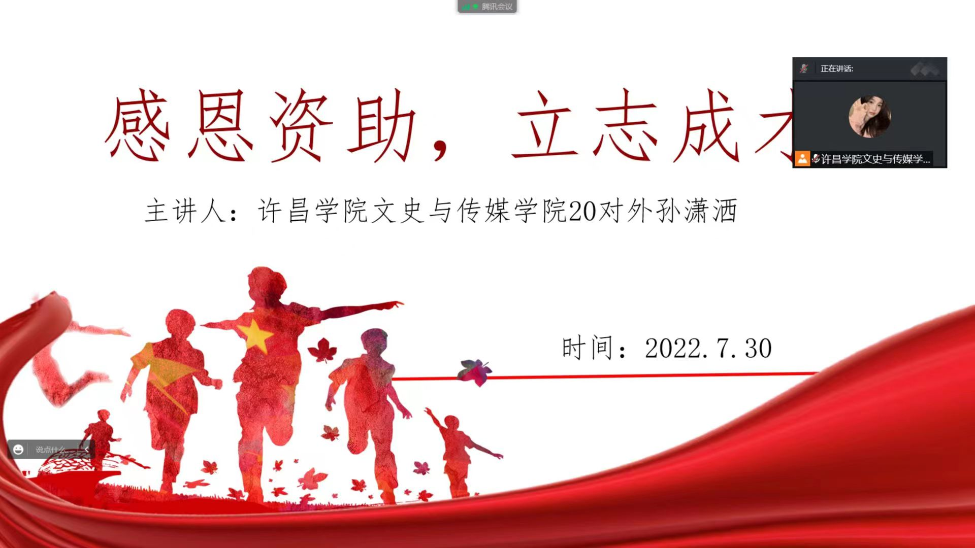 暑假期间,我院受助学生19级汉语言文学专业学生娄姗姗和20级汉语国际教育专业学生孙潇洒积极响应国家和学校的资助政策的号召,利用暑期返回家乡为母校学生讲解资助知识。