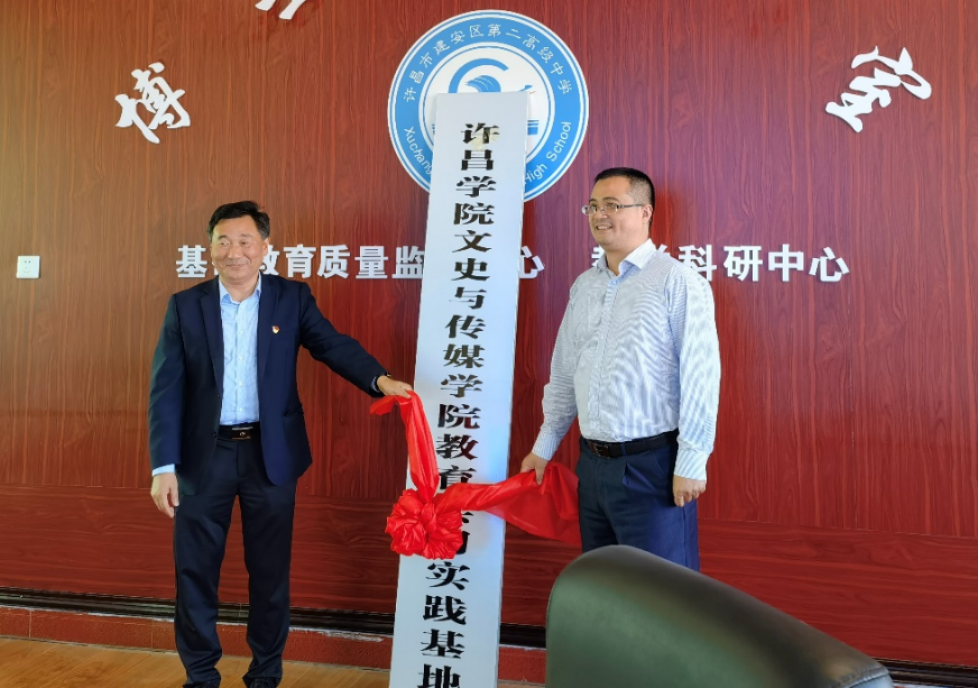会上,陈卫社校长对尤院长一行的到来表示热烈欢迎,并介绍了建安区第二高级中学的发展历史、办学规模、工作举措和教育成果。尤院长从办学历史、学科专业、特色和优势等方面介绍了我院的基本情况,并指出了此次交流的主要目的。随后双方签订了教育实习实践基地协议,陈卫社校长和尤建设院长、共同为“许昌学院文史与传媒学院教育实习实践基地”揭牌,建安区教体局杨准局长表示建安区教体局将全力为双方校地合作提供支持和服务。会后,我院人员参观了建安区第二高级中学校园。
