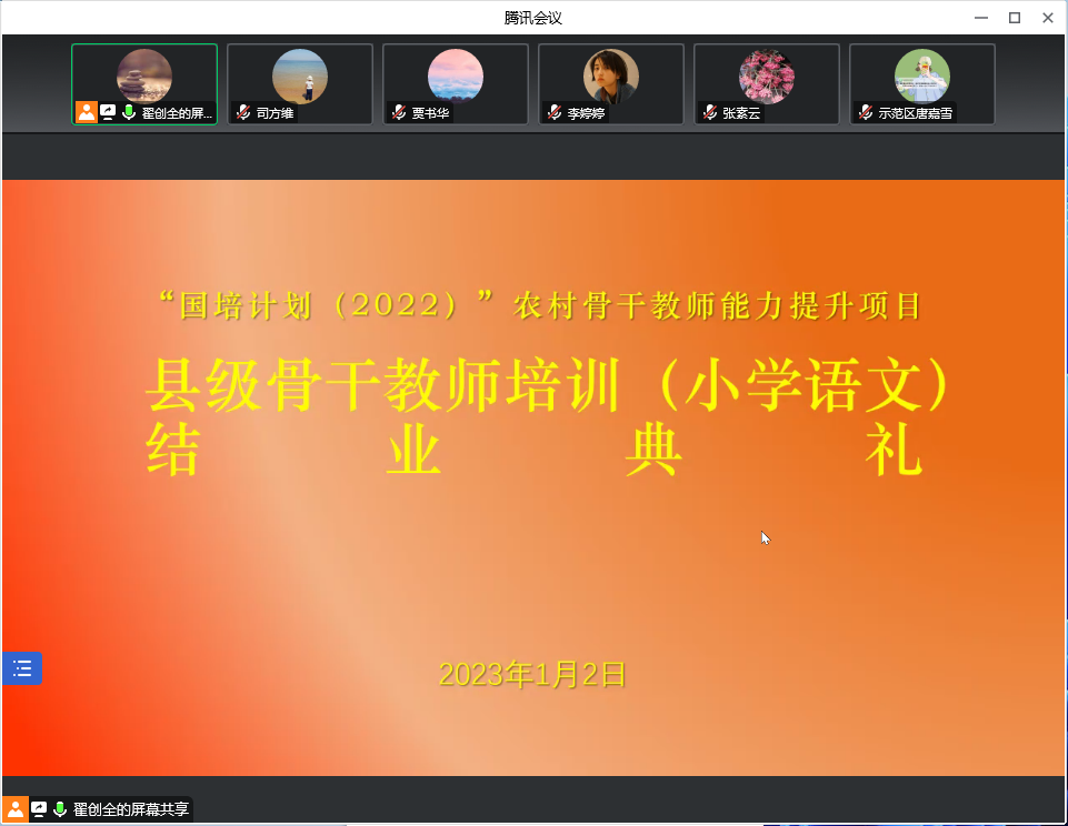 2023年1月2日下午,“国培计划(2022)”农村骨干教师能力提升培训——县级骨干教师小学语文班举办了隆重而又温馨的线上结业典礼。