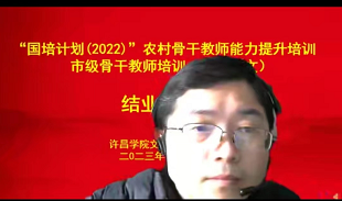 2023年1月2日下午,“国培计划(2022)”农村骨干教师能力提升培训——市级骨干教师(初中语文)培训班的全体学员迎来了线上结业典礼。本次结业典礼采用线上会议方式进行,项目秘书王晓敏、班主任靳书刚老师、焦庆艳老师以及全体国培学员参加了典礼。结业典礼由班主任靳书刚老师主持,文史与传媒学院副院长韩启振出席典礼并致辞。