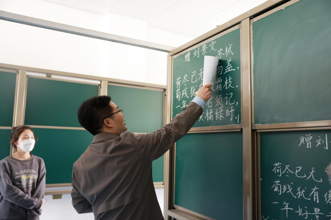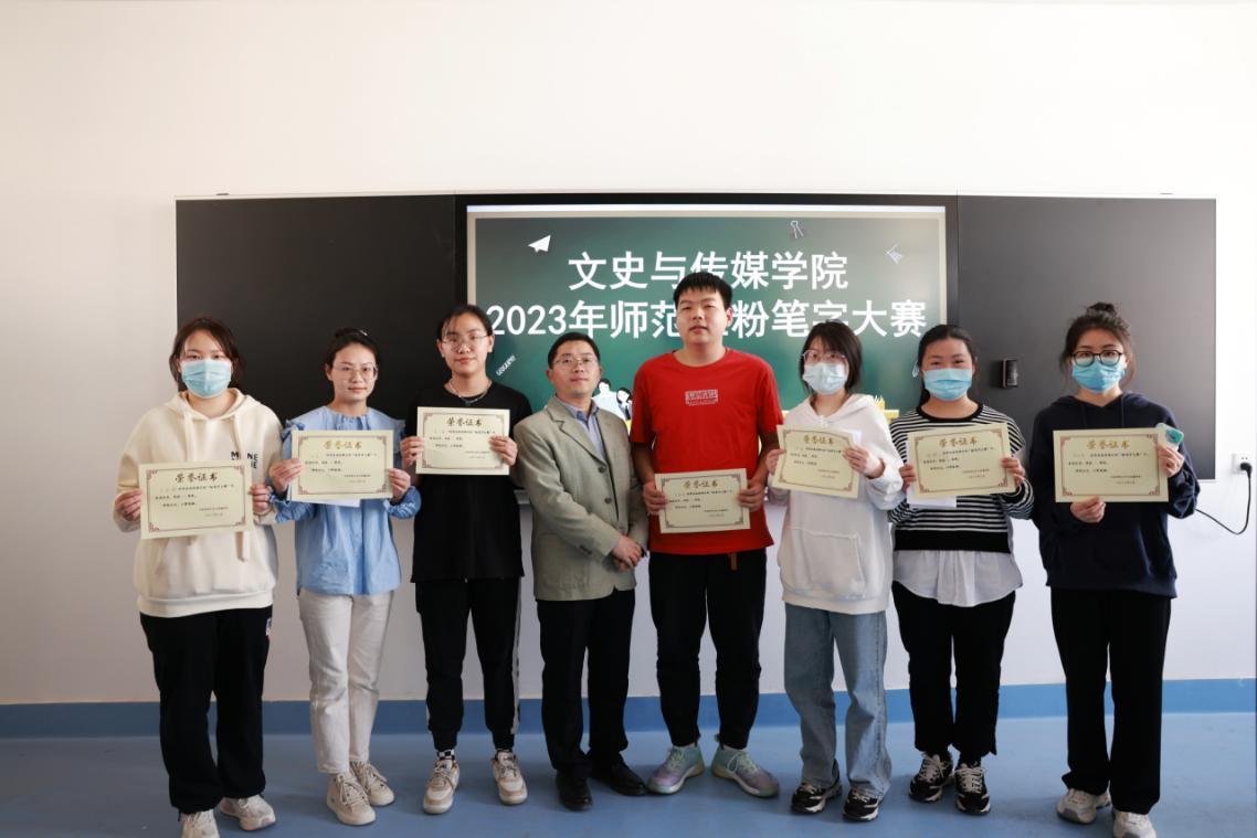 3月10日下午,我院在A3楼五楼粉笔字实训室举行2023年度师范生粉笔字大赛决赛。许昌市书法家协会副秘书长程晓亮、许昌学院文史与传媒学院副院长韩启振、许昌学院文史与传媒学院历史系教授付开镜现场指导本次书法比赛。