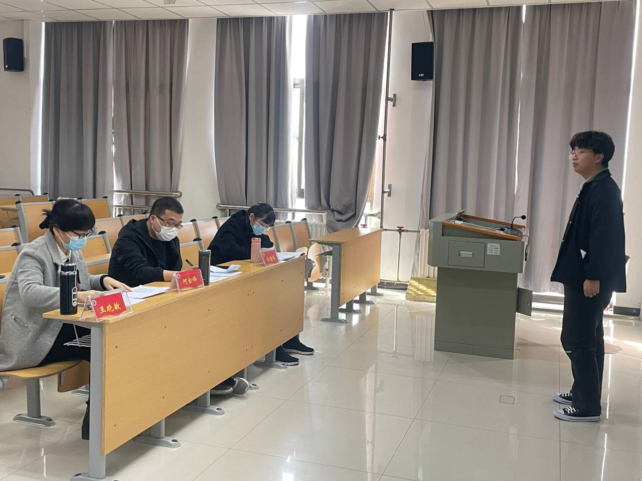 面试考生进场后,首先进行结构化的面试,从试题库随机抽取题目并现场作答;随后进行微型课讲课与答辩,并对评委根据教学设计提出的问题进行作答,评委根据考生的面试表现进行评分,三位评委的平均分作为考生的考试面试成绩。面试过程中,评委严格按照要求精心提问、公平打分,经过一天的紧张工作,2023届师范生教师资格证面试工作圆满结束。