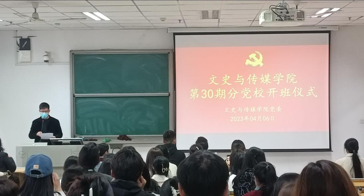 4月6日,我院在文综楼404教室举行文史与传媒学院第30期分党校培训班开班仪式。我院党委副书记马丽娜、37期分党校负责人张姗姗、学生党支部书记鲍利涵和第30期入党积极分子参加本次开班仪式。开班仪式由我院团委书记訾冉主持。