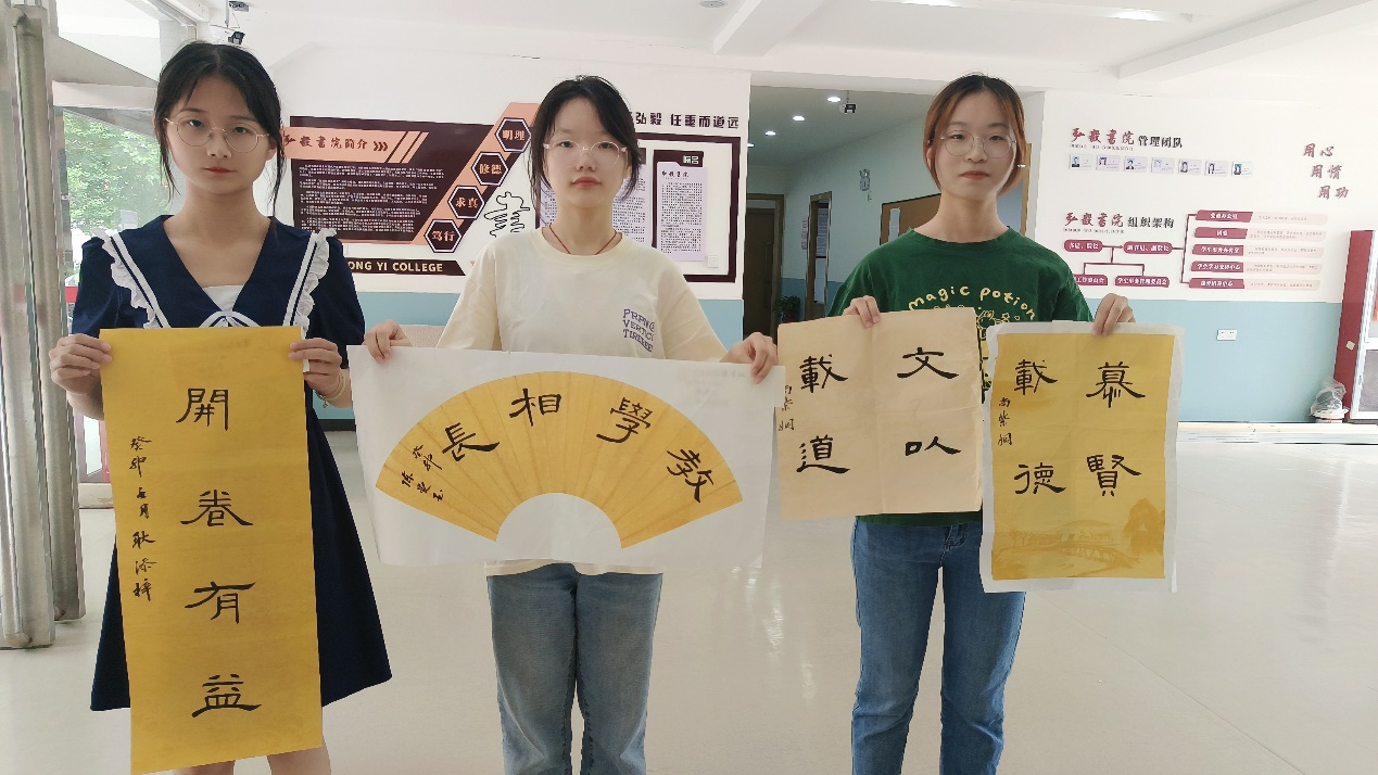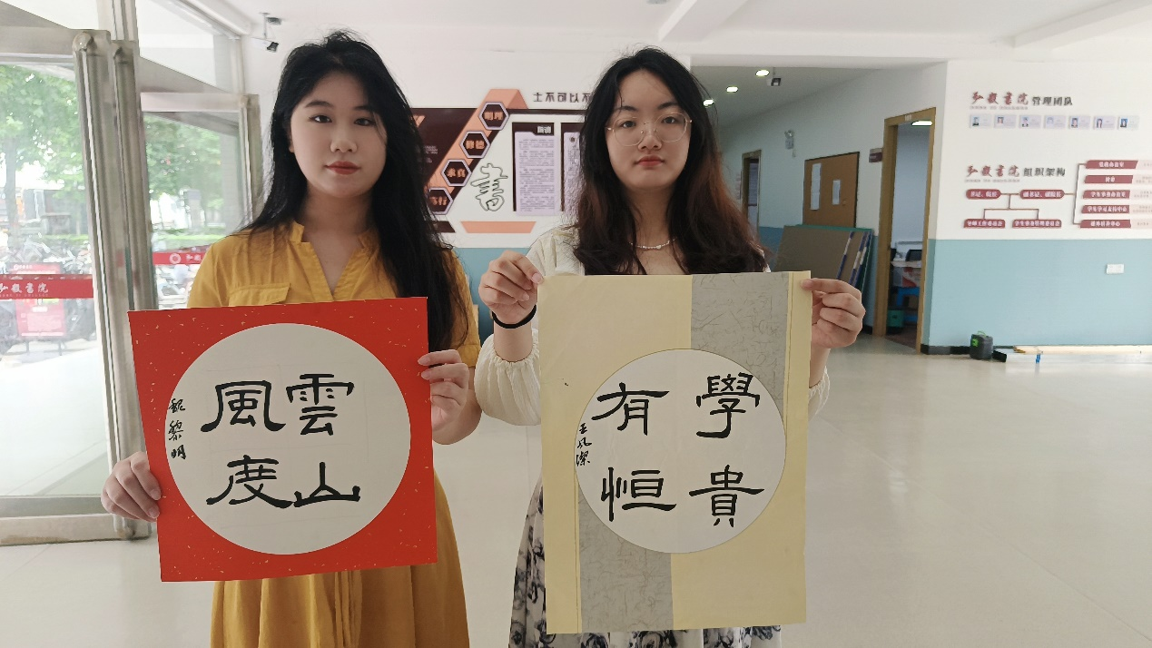 “书法铸师魂”师德主题书法创作活动是我院“艺术铸师魂”系列活动之一。我院汉语言文学专业各年级学生一方面认真练习毛笔字,一方面精心选择书写内容,最后在程老师的指导下,我院学生创作出内容和书写俱佳的优秀作品23副。本次创作出来的作品以隶书为主,内容有“慕贤载德”“教学相长”“文以载道”等富有传统尊师重道文化内涵的经典诗文语句。同学们纷纷表示,通过创作书法作品,他们领略到了汉字的生命力和艺术魅力,体会到立德树人的重要性,以后更要好好学习练习书法,积极进行书法创作,把书法与语文教学相结合,传承和弘扬中国优秀传统文化。(审核:许涛)