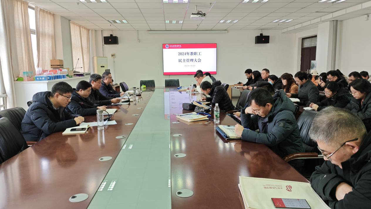 1月10日下午15时,文史与传媒学院2024年度教职工民主管理大会在文综楼1723会议室隆重举行。学院领导班子成员与全体教职工齐聚一堂,共同回顾过去一年的工作成果,展望新一年的发展蓝图。此次大会由学院分工会副主席訾冉主持。
