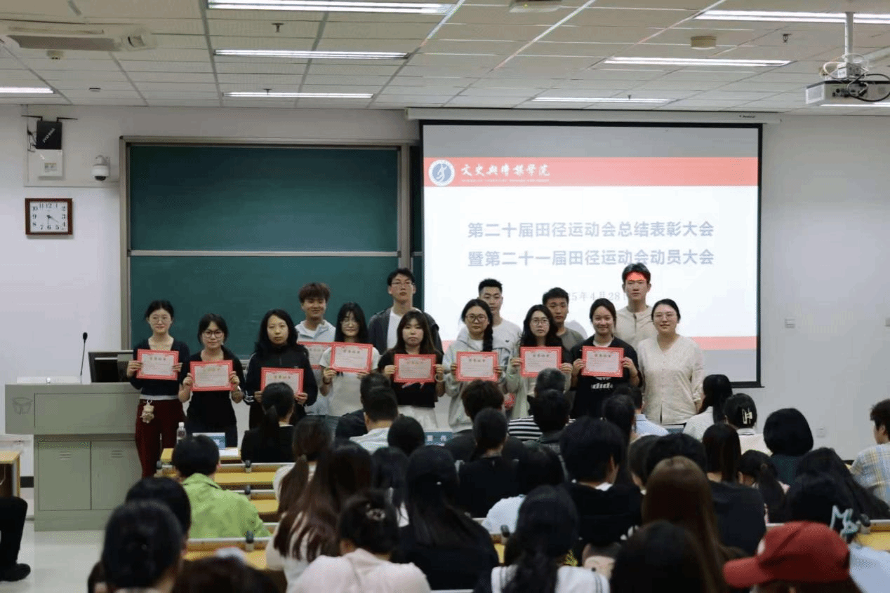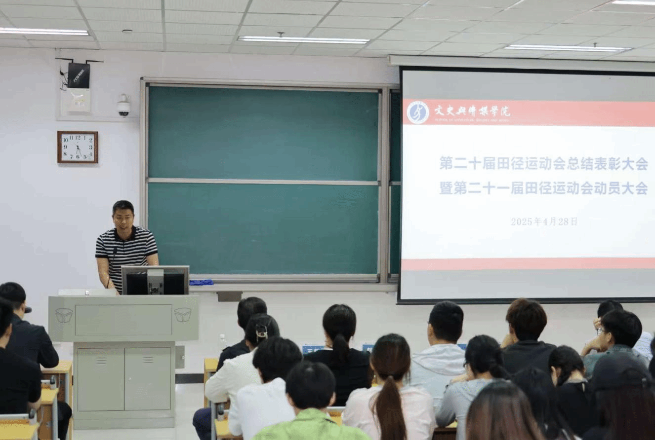 2025年4月28日,我院在文综楼教室召开第二十届田径运动会总结表彰大会暨第二十一届田径运动会动员大会。学院党委书记李立夏、党委副书记訾冉、副院长韩启振、团委书记张姗姗、学工办主任赵苏理、组织员王程诺、辅导员侯林男和运动会相关同学参加会议。