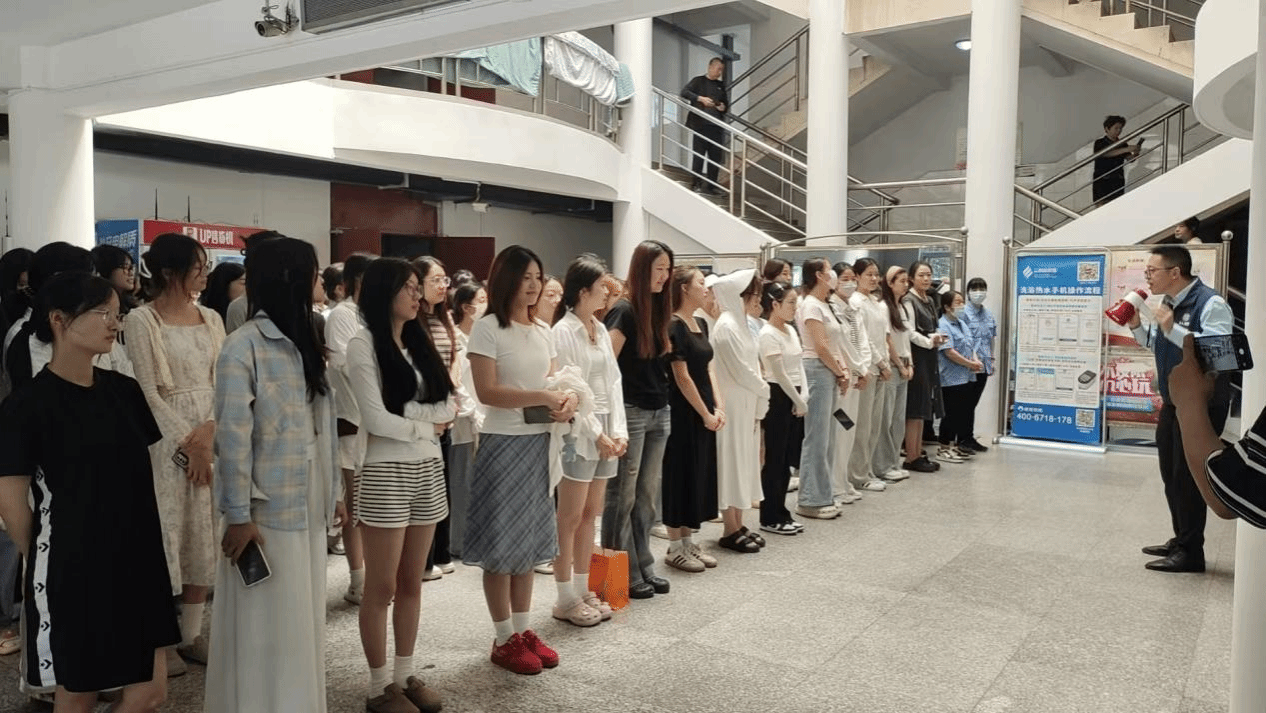 疏散结束后,消防员现场演示干粉灭火器“提、拔、握、压”操作步骤,并邀请学生实操体验。活动还通过讲解消防栓使用、火场自救互救技巧及报警要点,确保学生掌握“懂预防、会逃生、能处置”的核心技能。