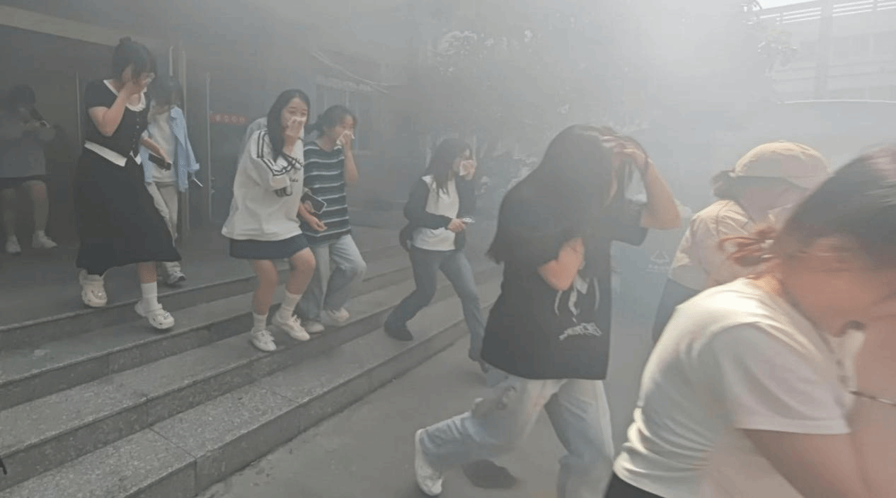 演练现场,随着警报声响起,宿管员立即启动应急疏散预案。在老师和引导员的指挥下,学生们迅速反应,用湿毛巾捂住口鼻,弯腰快速通过疏散通道,有序地从宿舍撤离至安全区域,仅用3分钟全员抵达集结点,展现出高效的应急协作能力。