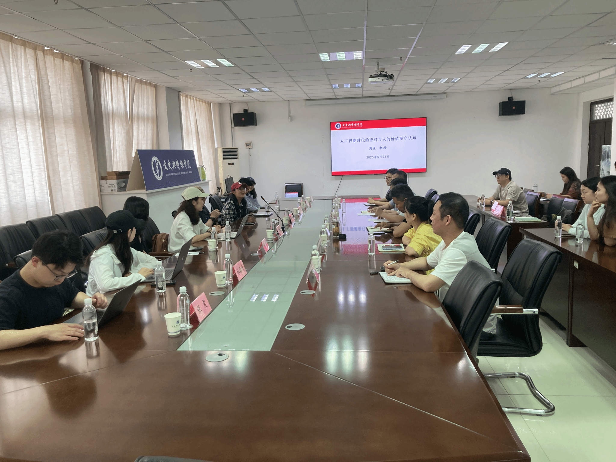 周星教授结合个人研究成果,从人工智能认识、人与人工智能相协调的四定律、四个维度坚守等方面分享了他对人工智能时代应对与人的价值坚守认知的新见解。周教授指出人工智能可能有无限创造,但我们人也有无限选择权,对人工智能的态度应该是拥抱、合作、借力、选择。另外,周星教授对我院专业发展与艺术类专业人才培养方案提出了宝贵建议。