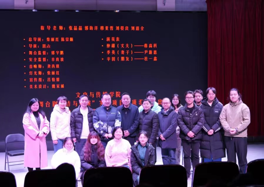 2024年1月2日晚上,我院2022级戏剧影视文学学生在B合七多功能演播厅成功演出丁西林的“民国戏剧三则”之一《瞎了一只眼》。许昌市影视家协会主席兼大禹影视公司总经理岳永安、许昌市曲艺家协会主席宋伟、许昌市建安区人民文化馆馆长刘俐东等校外嘉宾,以及我院副院长韩启振、戏剧影视文学系主任郭海洋等老师莅临演出现场,与100余位师生共同观看演出,并给予专业点评与指导。