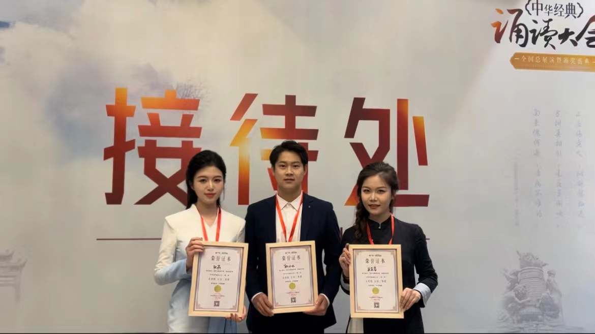 12月22日,在湖北大冶举行的“中华经典诵读大会”(第一季)全国总展演暨颁奖盛典上,我院播音与主持艺术专业学生张燕、韩冰冰分别荣获二等奖、吴芙蓉荣获三等奖。