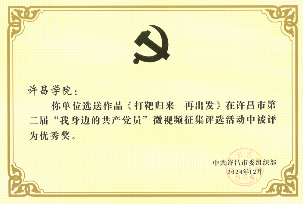 近日,由中共许昌市委组织部主办,许昌日报社协办,许昌市委组织部面向全市开展的第二届“我身边的共产党员”微视频征集评选活动公布评比结果,我院推送的短视频作品《打靶归来 再出发》荣获优秀奖。该视频由我院教师张姗姗、韩诗瑾指导。