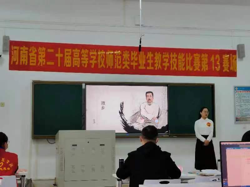 河南省第二十届高等学校师范类专业毕业生教学技能比赛于3月17日至19日在商丘师范学院举办。我院根据文件要求,高度重视本次比赛,文史与传媒学院副院长韩启振亲自带队参赛。赛前指导教师刘沙沙与校外指导教师许昌市教研室叶世慧老师指导余佳颖精心备课,开展多轮磨课、试讲。比赛中,余佳颖同学抽到的微型课篇目是《故乡》,讲课中她教态自然、落落大方,教学目标明确,重点突出,思路清晰,环节层层递进,贯彻了新课标理念,获得评委一致好评。赛后,我院老师和学生认真观摩学习了同组其他选手的微型课展示,为我院今后师范生技能大赛积累了经验。