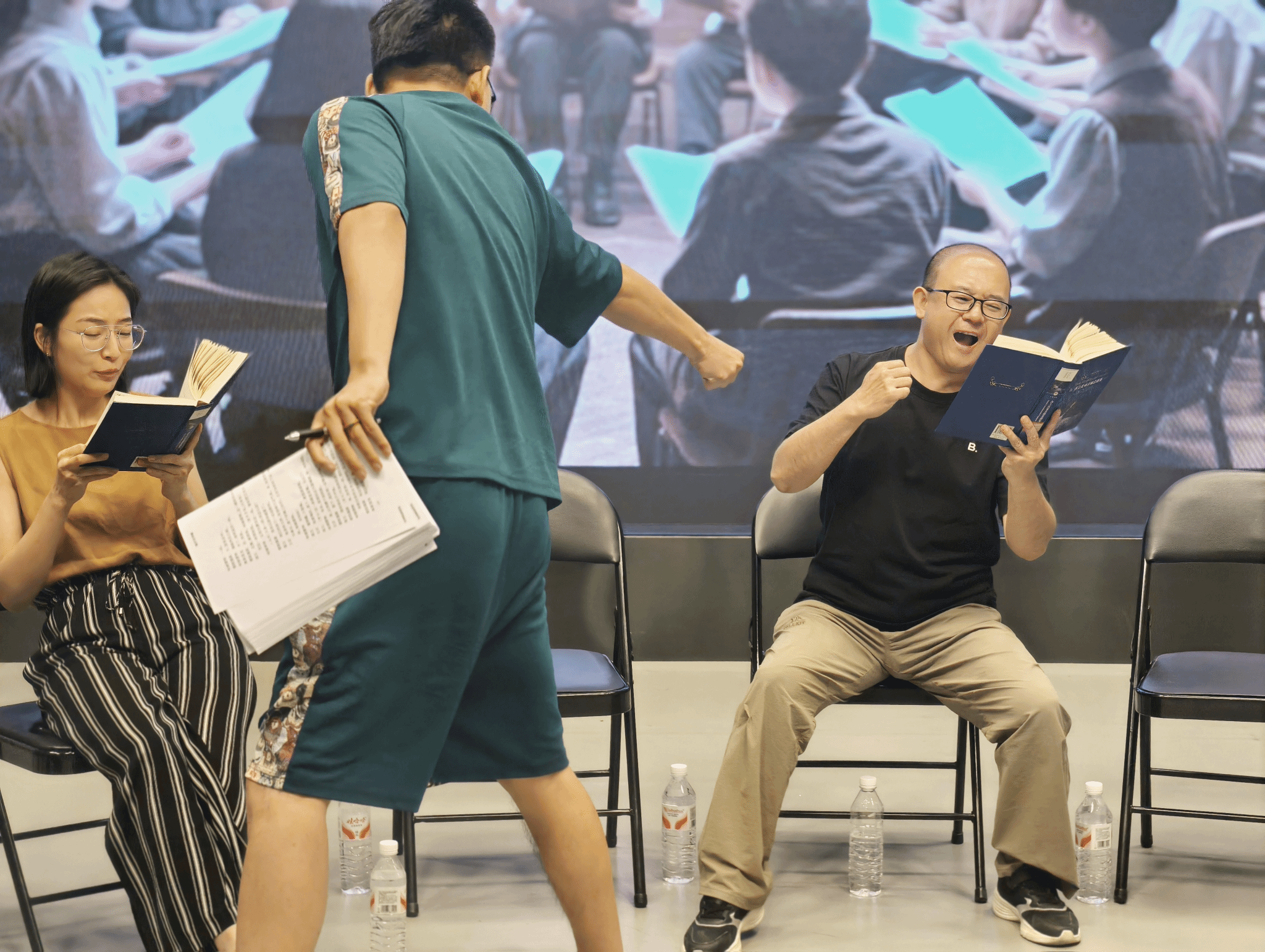 随着围读的深入,现场氛围愈发热烈。在高潮片段,师生们自发站起身来,融入调度与肢体动作,全情投入演绎,仿佛将演播厅变成了真正的戏剧舞台。围读结束后,每位嘉宾、老师和学生都用一句话分享了自己对本次围读会的深刻感受。大家纷纷表示,静下心来研读经典,对《哈姆莱特》这部传世之作有了更为深刻的理解,希望此类围读活动能够长期举办,并不断丰富活动形式,带来更多元的体验。