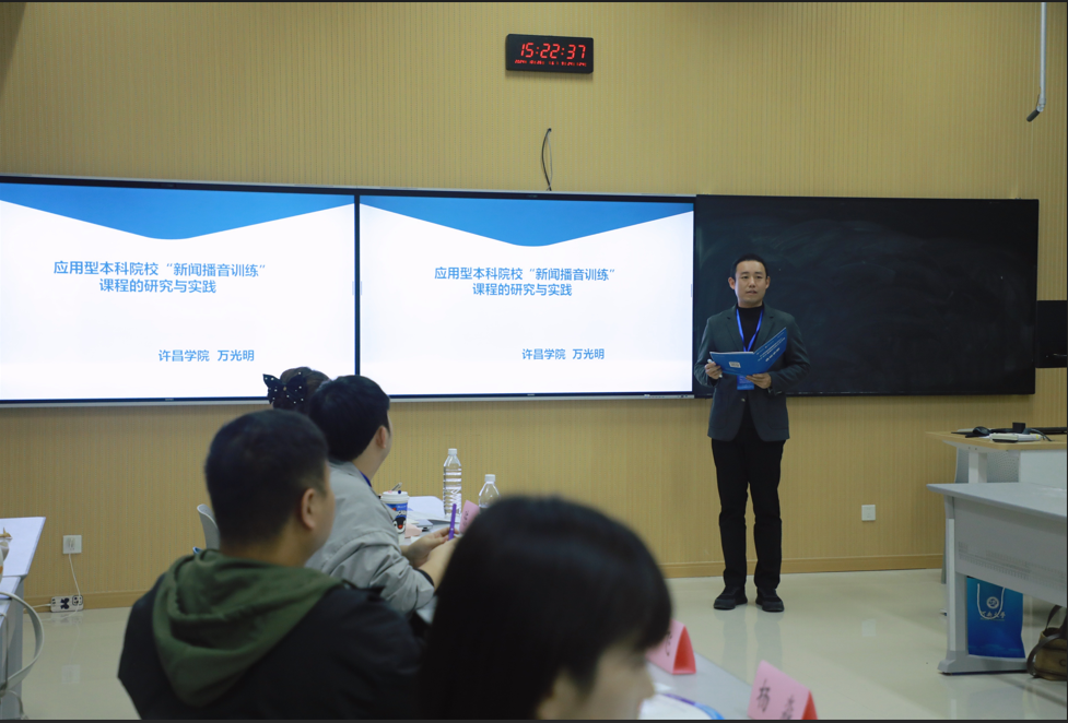 黄杰老师的报告主要聚焦于如何将地方特色文化资源有机融入专业教学,这为培养具有文化底蕴的播音主持人才提供了新思路。万光明老师则从应用型人才培养的角度,分享了关于新闻播音训练课程的创新实践经验,这引发了与会者的热烈讨论。