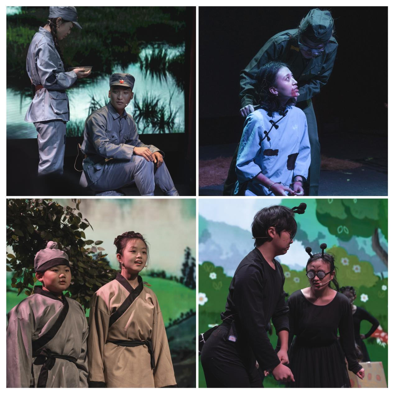 本次演出由我院《戏剧表导演基础》课程项目、九歌剧社、大学生青年志愿者协会和杨根思双拥社区共同精心筹备,呈现出五个风格各异、精彩纷呈的剧目。《金色的鱼钩》将长征路上老班长舍己为人的感人故事搬上舞台,生动地展现出革命先辈舍己为人的崇高精神。《神笔马良》以奇幻的情节、鲜活的人物塑造和演员们的精彩诠释,引得台下观众掌声连连。《一块奶酪》则演绎小蚂蚁们的故事,通过有趣的情节突显出团队协作与遵守纪律的重要性。《眼镜与趴趴怪》凭借奇幻的设定和幽默的剧情,在给孩子们带来欢乐的同时,巧妙地普及了用眼卫生知识,富有教育意义。《一封遗书》以深沉的情感,借助独特的叙事方式,展现出赵一曼为代表的革命先烈的感人故事。