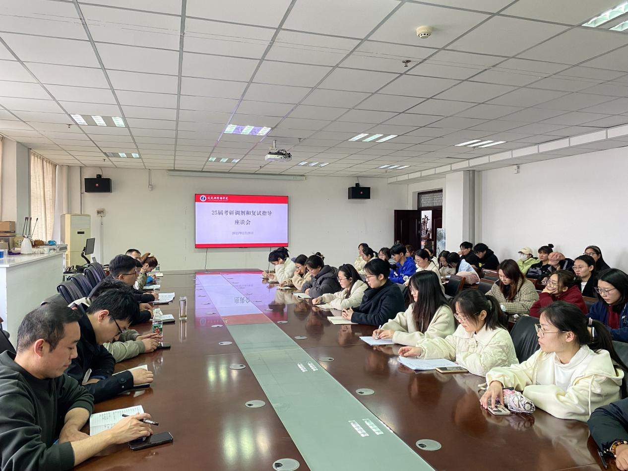 为助力大四考研学子顺利通过调剂与复试,从而进一步提升学院考研录取率,我学院于2025年2月28日下午,在文综楼1723会议室成功举办“25届考研复试与调剂指导座谈会”。学院党委副书记訾冉、教学副院长韩启振、各系主任及考研过线学生参与座谈,本次会议由訾冉主持。