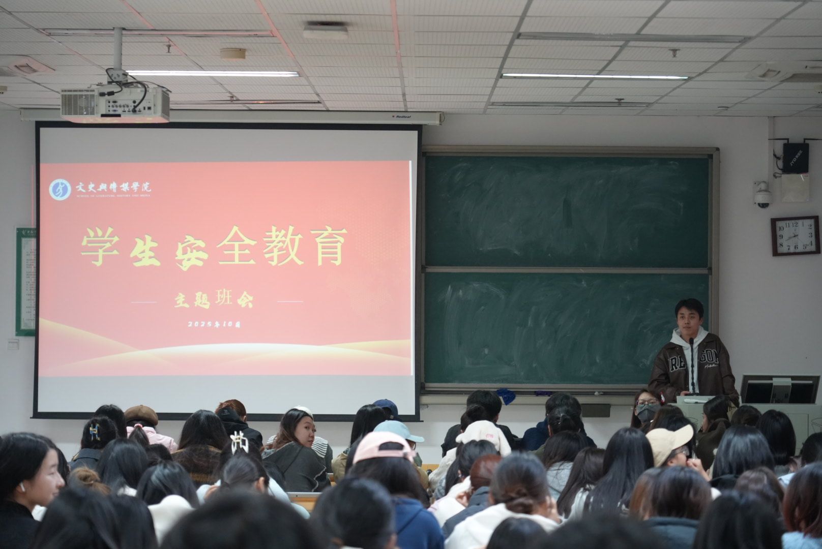 本次班会内容丰富、重点明确,既有安全教育的严肃警示,也有学业规划的细致引导,更有精神层面的深刻鼓舞,有效增强了学生的安全防范意识,提升了同学们的生涯规划能力,为营造安全、和谐、奋进的校园环境奠定了坚实基础。(审核:李立夏,图片拍摄:潘文博、孟夏影)