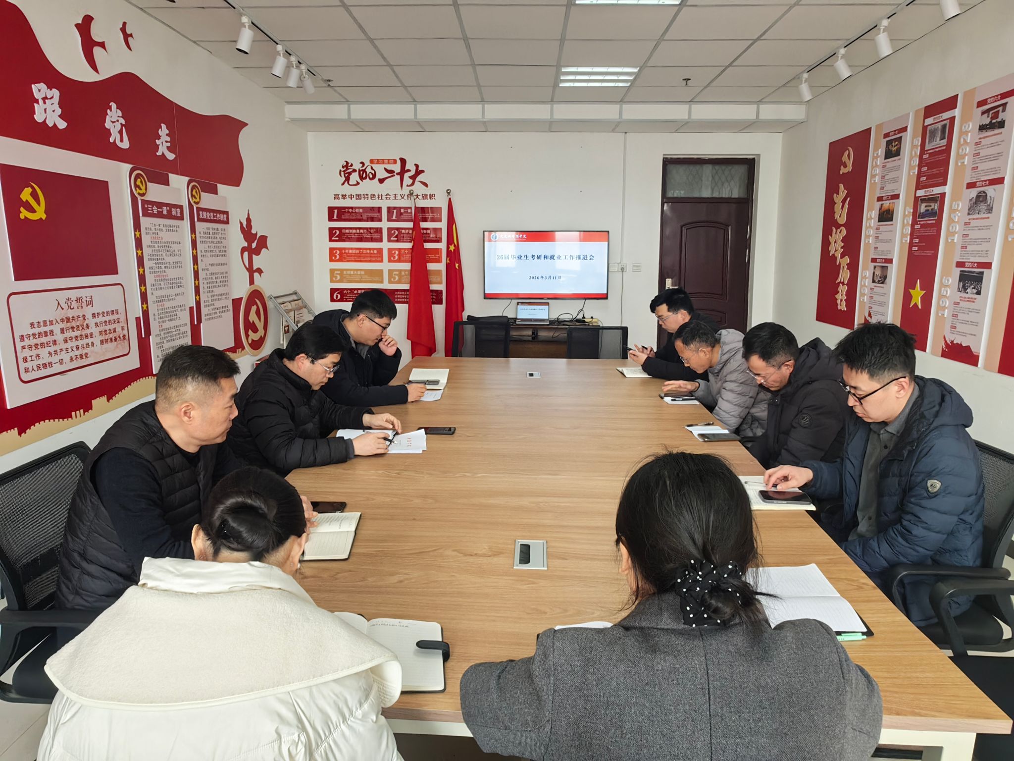 为进一步推动树立和践行正确政绩观学习教育走深走实,将学习成果转化为服务学生的具体行动,3月11日,我院在文科综合楼1509会议室召开26届毕业生考研和就业工作推进会,正式启动《践行正确政绩观——2026“助研圆梦”行动计划》。院领导訾冉、韩启振出席会议并作工作部署,各教工党支部书记、系主任、毕业班辅导员及教师代表参加会议。