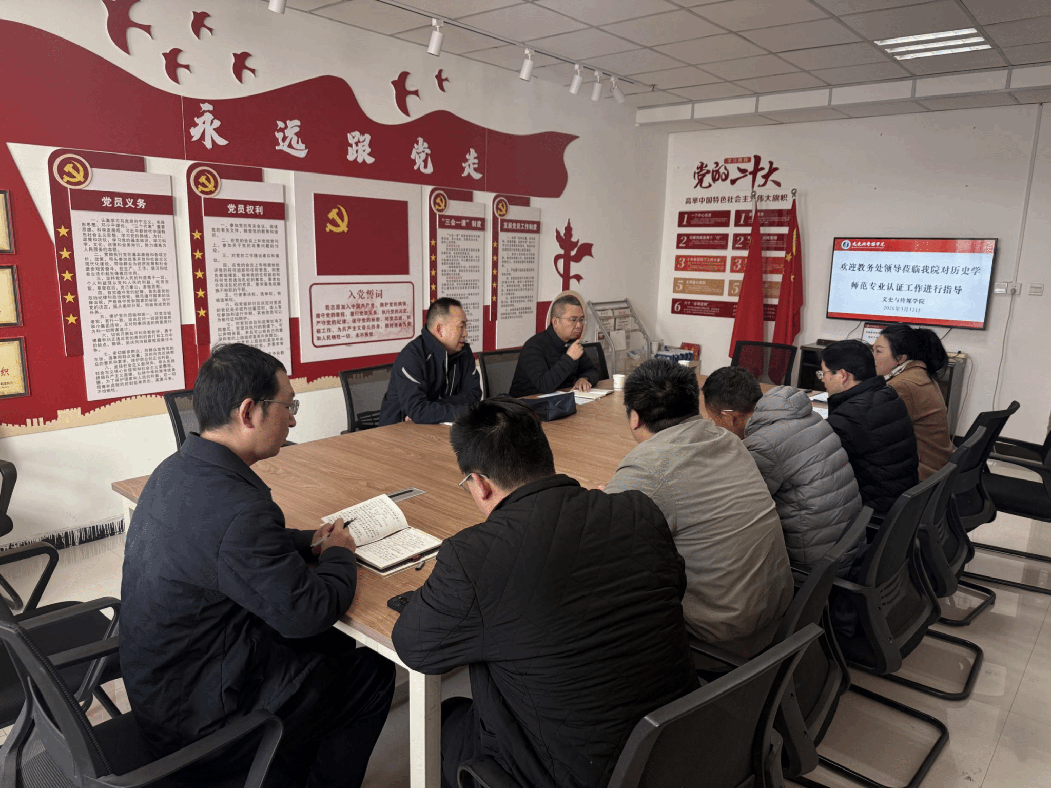 郭卫芸副主任认真听取汇报后,对我院历史学师范专业认证申请工作的推进成效给予充分肯定。针对各小组反馈的问题与难点,他逐一进行了细致解答和精准指导。他强调,师范专业认证工作时间紧、任务重,学院必须统筹谋划、责任到人,在自评自建过程中坚持对标对表、问题导向。他特别指出,认证申请书和自评报告的撰写要做到条理清晰、逻辑通顺、论据详实、图文并茂,既要守住底线规范,又要深挖专业内涵,强化亮点和特色,确保相关材料的质量和水平。